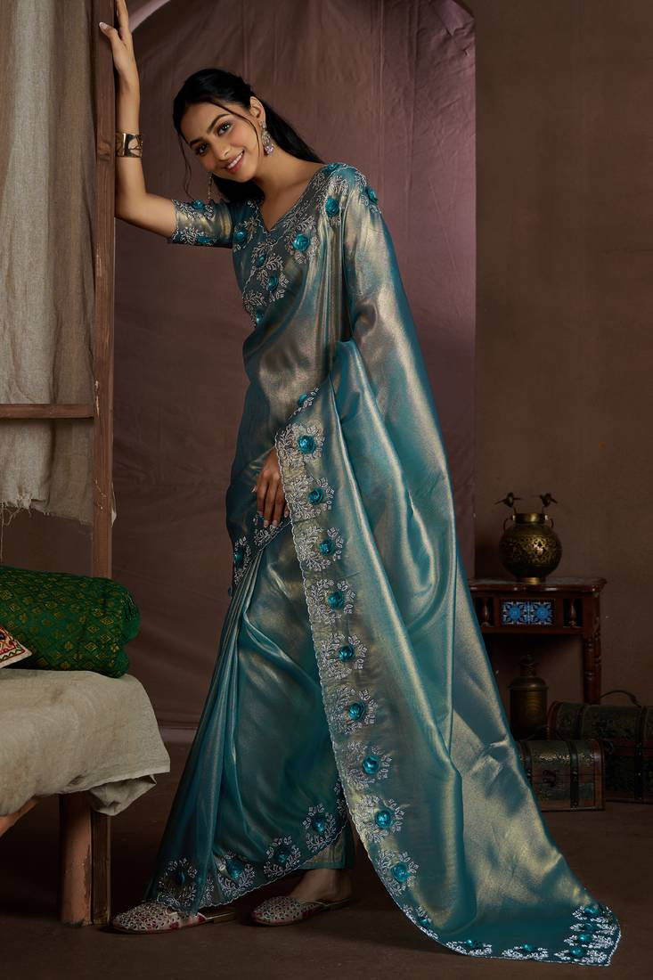 If you love detail but do not want heaviness, embroidered organza is your answer. It gives you richness while keeping the saree light.